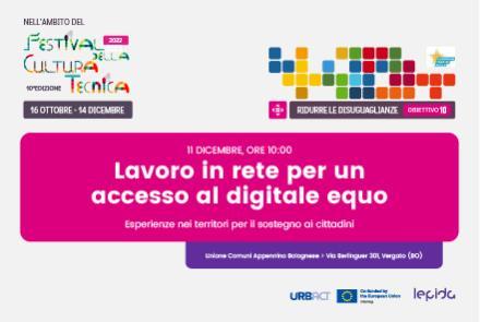 L’evento, che si svolge nell’ambito del Festival della Cultura Tecnica, è un momento di sintesi e confronto basato sulla condivisione di buone pratiche per ridurre le diseguaglianze sociali, realizzato grazie alla collaborazione in rete tra Lepida, Enti pubblici e ETS/OO SS.